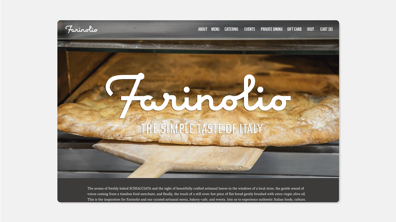 Farinolio is a Tuscan bakery-cafe in Westfield, New Jersey, focused on the simple pleasure of enjoying well-crafted food. Farinolio’s website didn’t fully convey the essence of the brand’s authentic Italian roots or its simple yet powerful origin story. While the bakery-cafe had a clear mission and product offering, visitors struggled to connect with the brand’s core story and offerings.